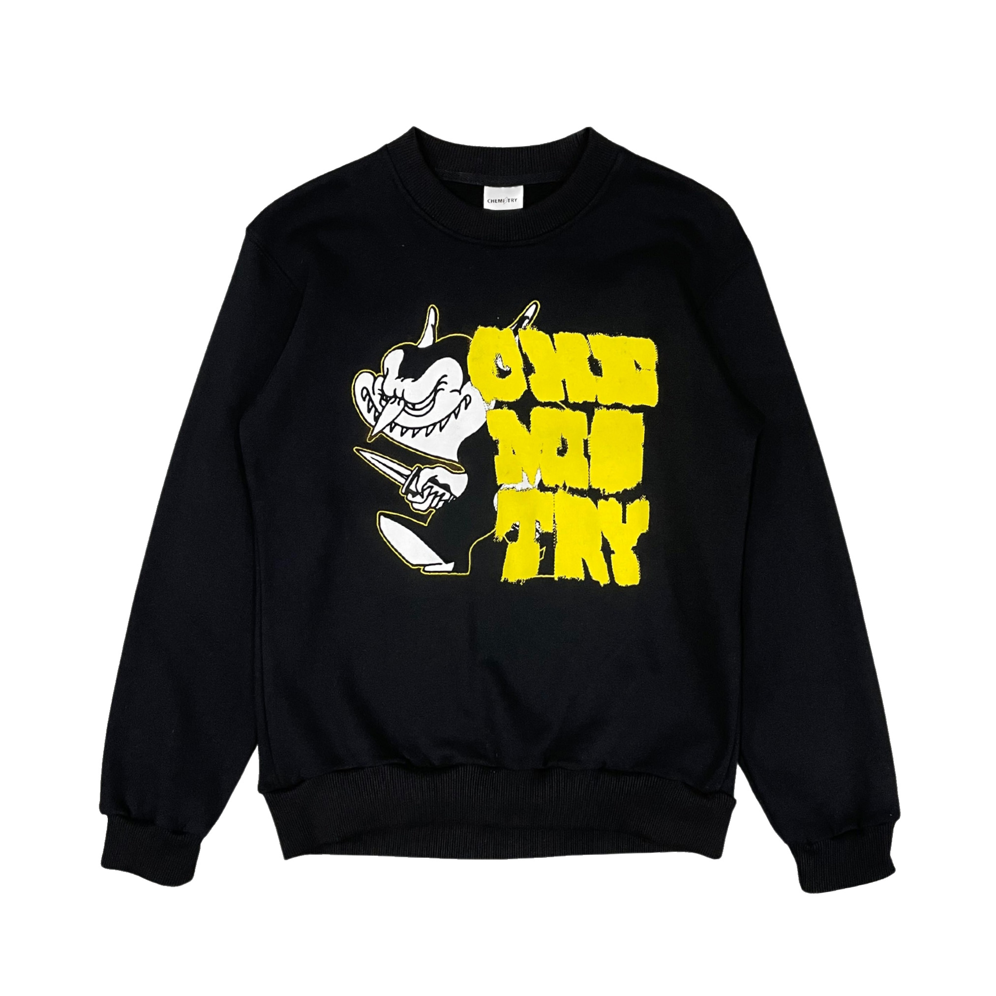 Chemistry Straight Crewneck Sweater with a cartoon character design with chemistry written on the front.