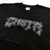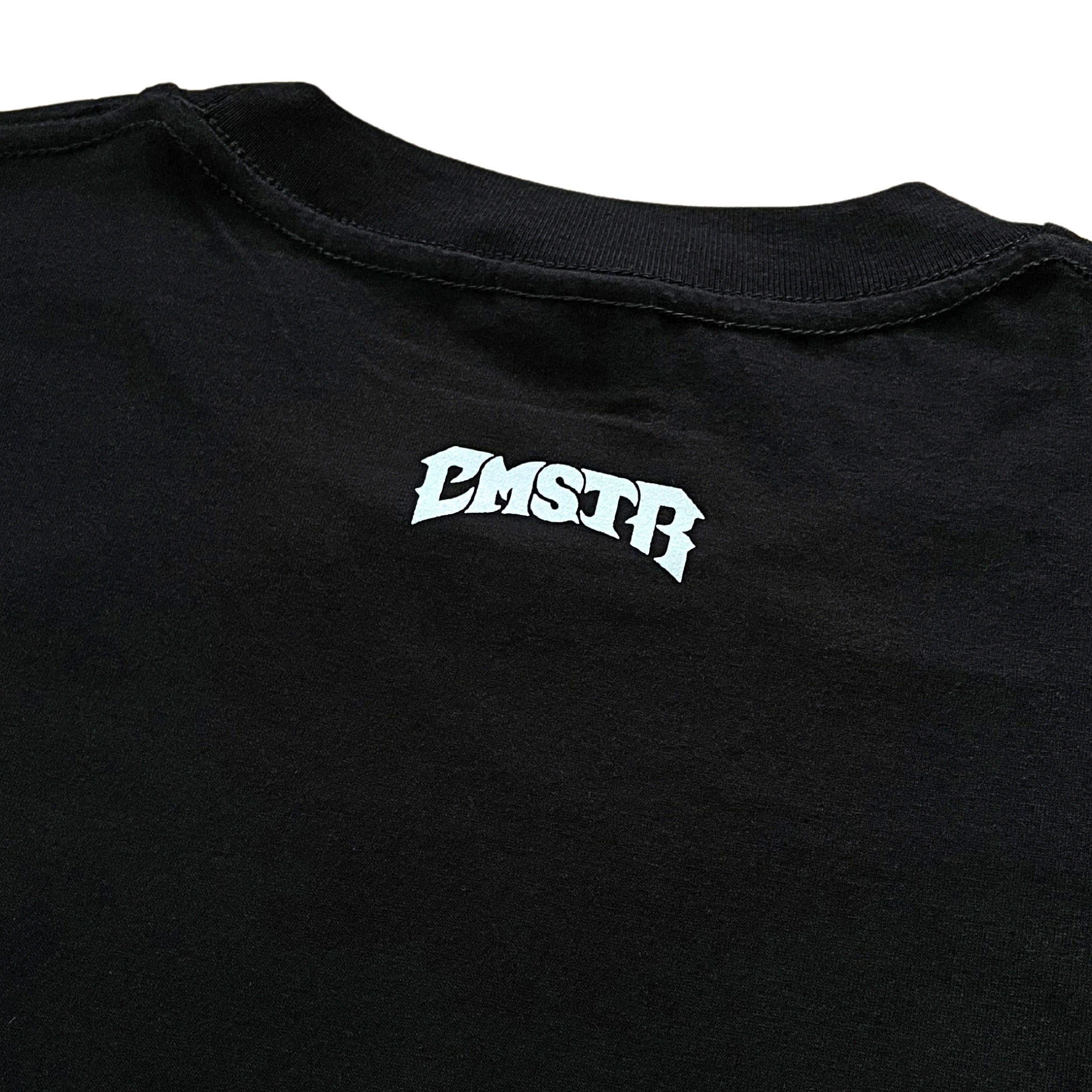 CMSTR T-shirt with a design of cracks in the ground that spews hot lava.