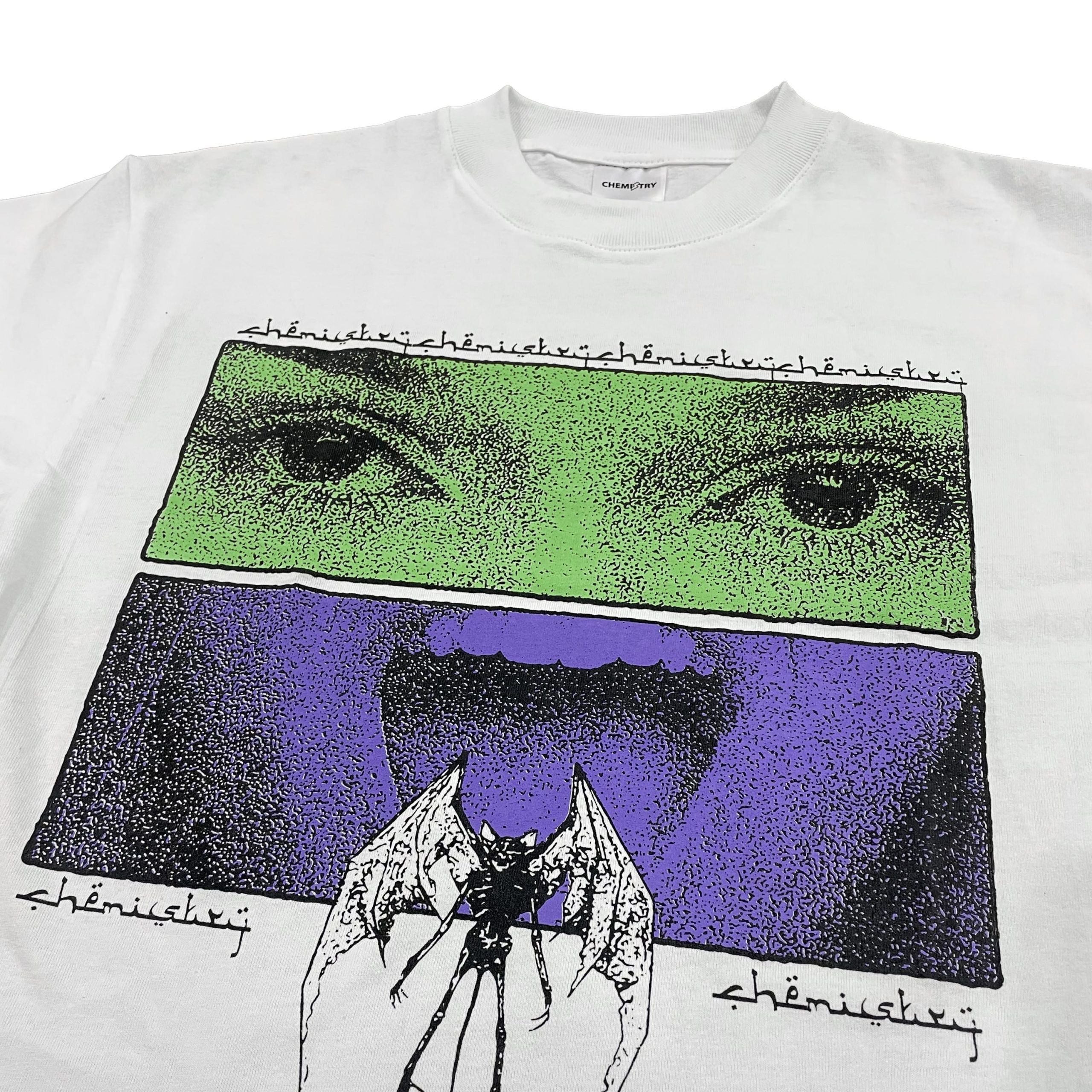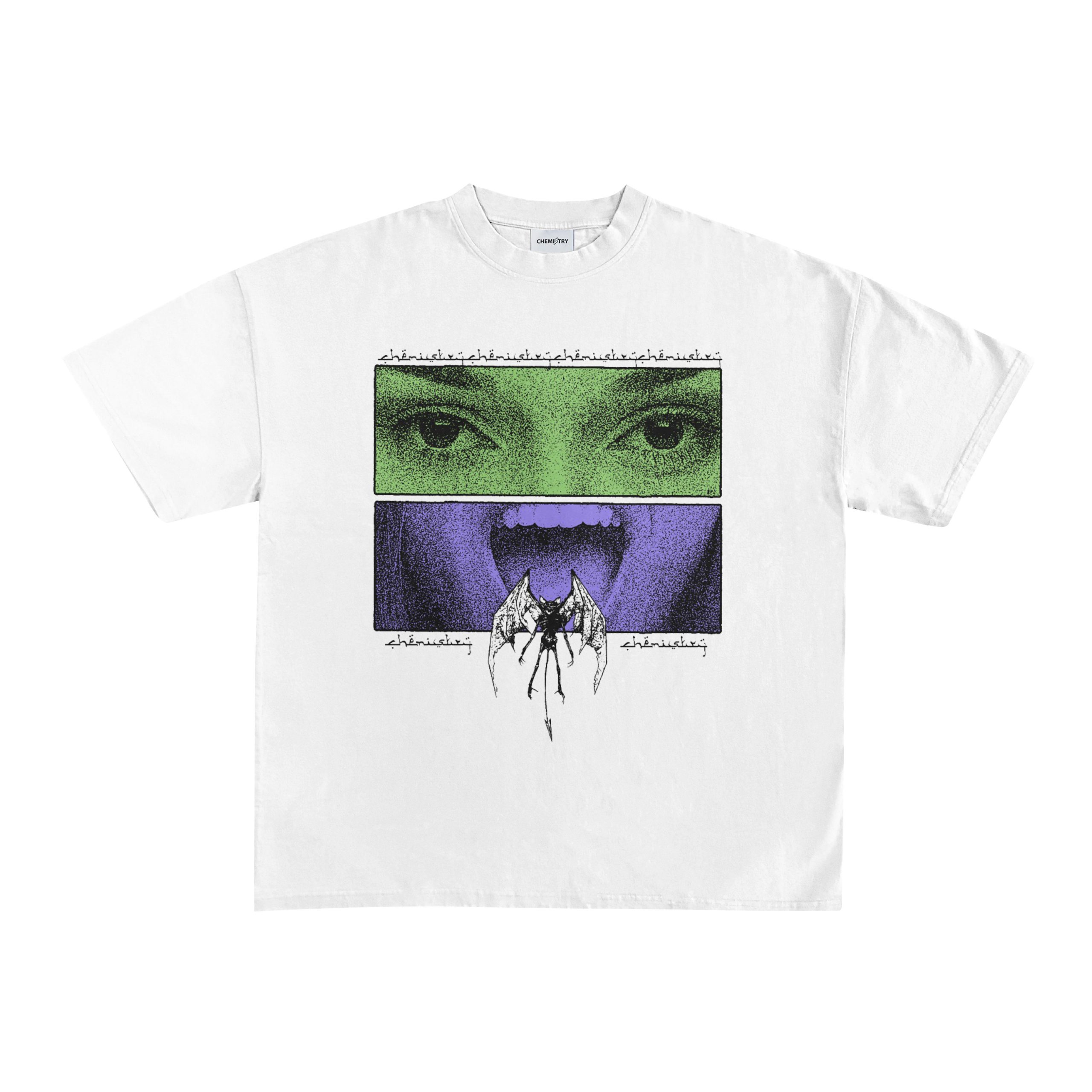 Heavyweight Chemistry Straight T-shirt with Boxy Crop pattern featuring a person screaming in agony due to disturbance from spirits.