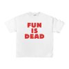 Heavyweight Chemistry Straight T-shirt with Boxy Crop pattern with the words Fun Is Dead screen printed on the front.