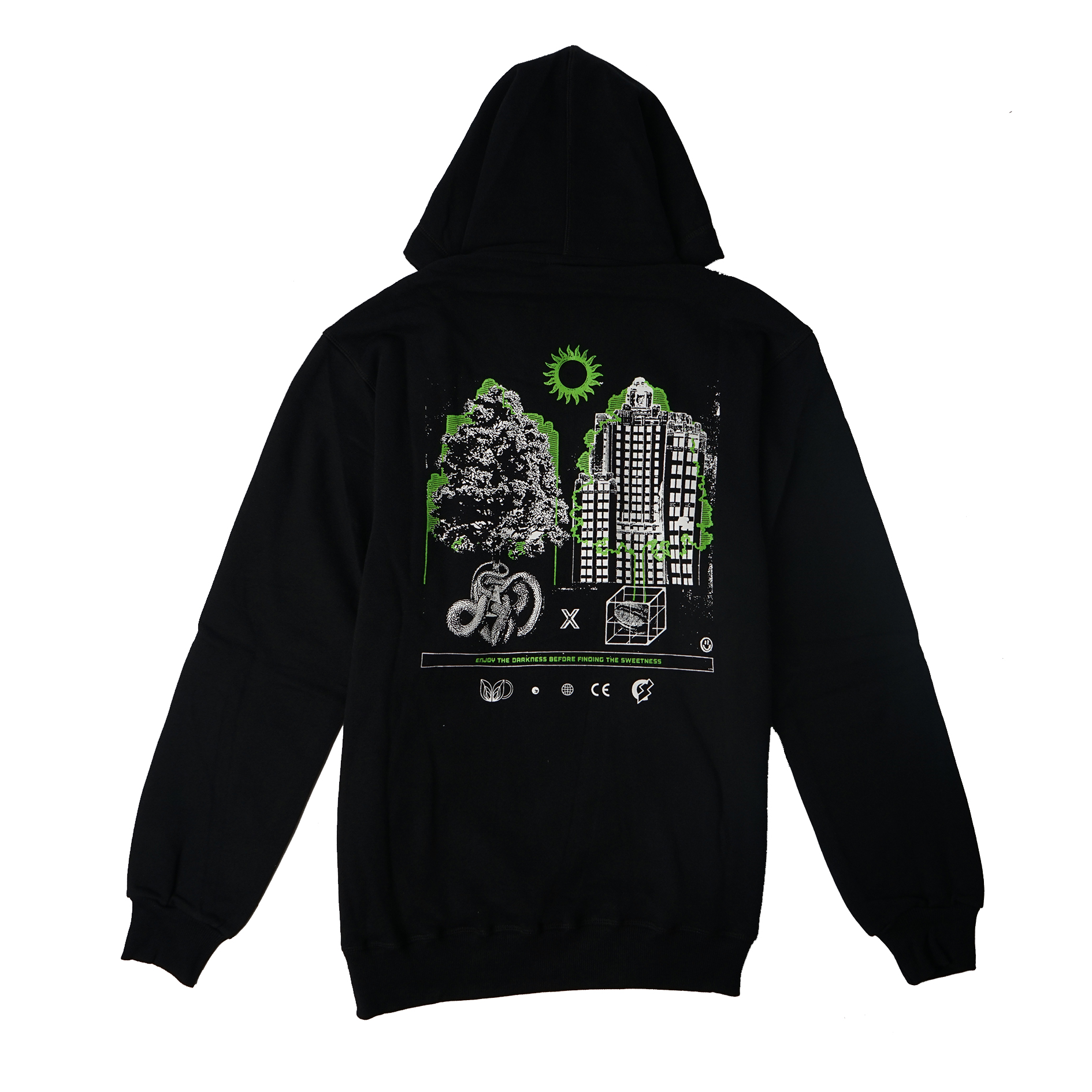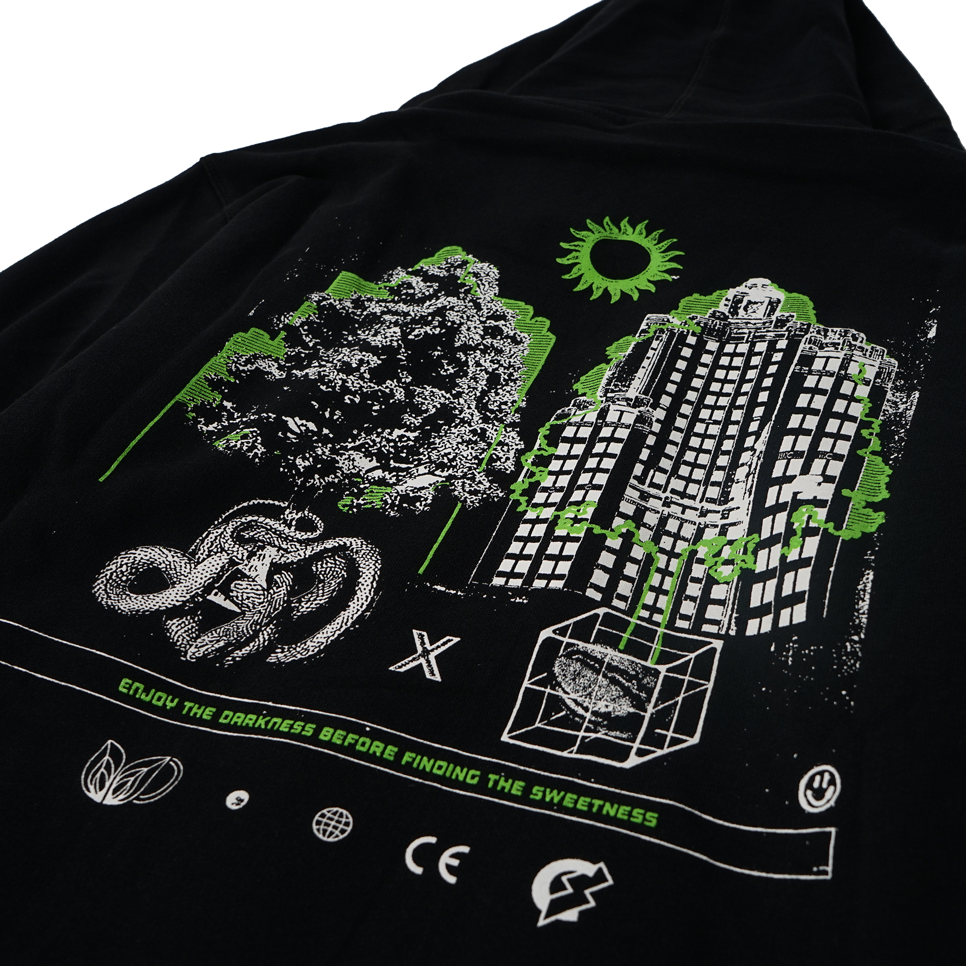 - Screenprinted graphic on front and back